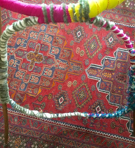So I started by wrapping a hoop – the kind made of plastic that you can buy in a toyshop - and I wrapped it in thin rags, tying it with string at intervals to keep the rags in place . Then I got the garden canes together in a tipi shape by holding them together and letting the bottom of the canes splay out to create my classic tipi shape. I tied the top with string. It wasn’t too hard to drop the hoop down from the top until it could not fall further and tie at every junction the hoop and the canes crossed. This makes your tepee strong enough and sturdy enough for the bustle of play. Try to get the hoop to fall high enough, so that the access is easy. I made mine for 1-3 year olds could get in which suits our family perfectly. If your kids are older, use taller canes and a bigger hoop.