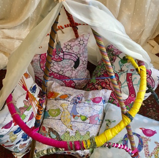 When our children were small, it was fun to keep them amused by making different spaces for them to play and it is really easy to do. Recently we made one at MollyMac to show off our cushions because what play teepee would be complete without some cushions? And, obviously, MollyMac ones are the best choice!